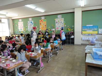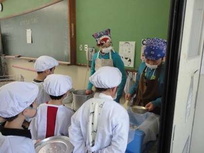 給食の準備も大変なので,2週間だけ,6年生がお手伝いに行くことになりました。
