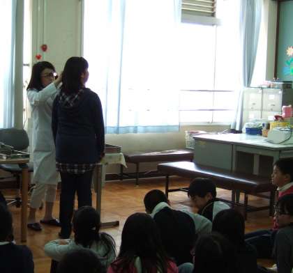耳鼻科校医の永田先生に丁寧に診て頂いています。