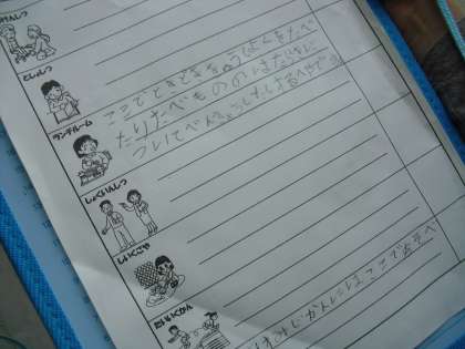 「学校探検」に1年生を連れていきます。そのために,何をするところか説明ができるように自分なりに書いていきました。人に説明をするのは,なかなか説明しにくいものです。がんばって書いていました。