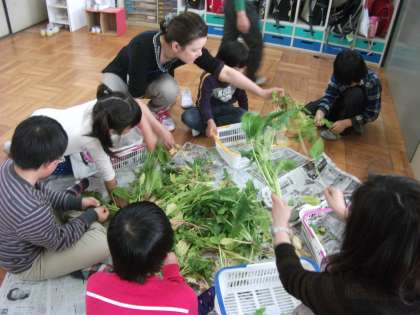 ほうれん草を収穫しました。少し大きくなりすぎましたので,葉と茎を分けて,茹でることにしました。