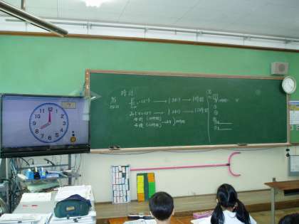 時計の学習をやっています。長い針の動きや短い針の動きについて時計を動かしながら練習していますが,読みなれていること慣れていない子の差が出ています。実際に時計に慣れていってほしいです。