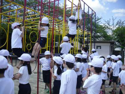 「とびくらべ」では,両足跳びに挑戦。陣とり遊びも,とても,盛り上がっていました。総合遊具にも,ずいぶん慣れました。