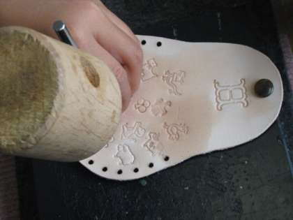 革細工が体験できます。革に穴を開けたり模様をつけるのには結構力と技が必要です。完成品はとても素敵なものになっていました。
