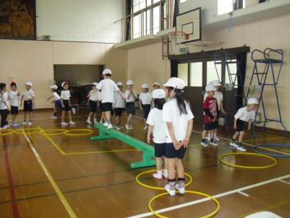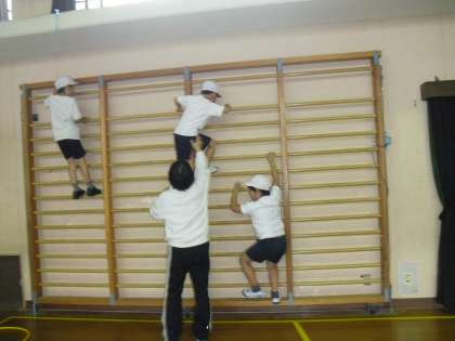 雨のため,残念ながら遠足に行きことができませんでした。5校時は,1年生から取り組んでいる「ようぐあそび」をして,体をいっぱい動かしました。