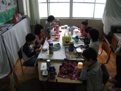 雨の為楽しみにしていた遠足が延期になりました。でも,愛情たっぷりのお弁当を学校で食べることができ,みんな嬉しそうでした。来週こそは,青空のもとでおいしいお弁当を食べたいです。