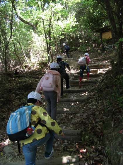 春の遠足で「法の山」に登り,宝ケ池こどもの楽園に行ってきました。先週雨で延期になり残念でしたが,今日は天候に恵まれて新緑の中遠足を楽しみました。