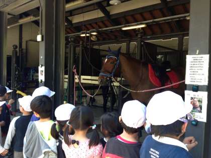 お昼からは、平安騎馬隊の馬を見に行きました。