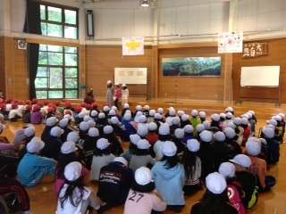 お互いの学校紹介をして,校歌も歌いました。