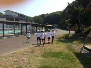 所内探検にグループに分かれて行きます。