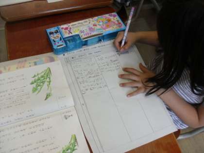 今日の国語「たんぽぽのちえ」では,たんぽぽの様子や,たんぽぽの様子からなぜそのような様子になるのかを探ったり,初めて知ったことや思ったことなどをまとめる学習をしました。よく見たことのある「たんぽぽ」について,子どもたちも興味をもって学習に取り組んでいました。