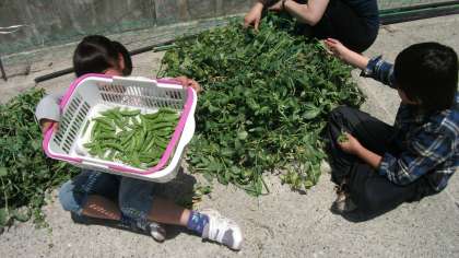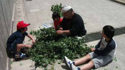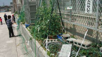 先週から学校に猿が入っててきています。ひまわり花壇の「いちご」と「スナックエンドウ」がとられました。花壇全体に網を貼ってもらい被害を食い止めようとしています。スナックエンドウは花が咲いているのがまだたくさんありましたが,抜いて猿の入ってこないようにしました。猿に襲われないようにくれぐれも気を付けたいです。