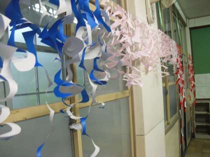 色々な切り方をためして、おもしろいかざりをみんな作っていました。