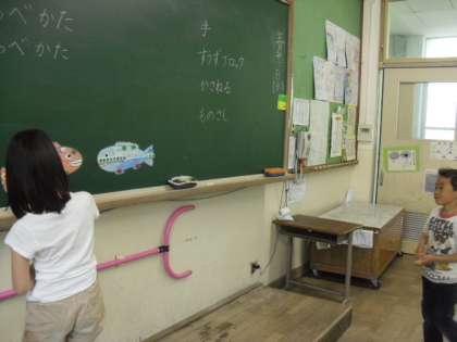 算数の単元は「長さ」に入りますが,今まで学習してきた「たし算・ひき算」「時計」は繰り返し練習していきます。「たし算・ひき算」は,ブロックや手を使わないで頭で計算できるように練習を繰り返ししていきます。「時計」もデジタル時計ではなく,針の時計で針の動きや時刻・時間の学習を繰り返しています。