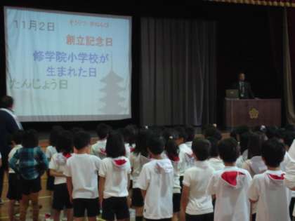 11月2日。今日は「修学院小学校が生まれた日」。お祝いをします。それは,とても大切な日だからです。