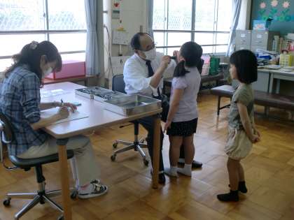 大きく口をあけてみてもらいました。明日(5日)に「歯・口腔健康診断結果のお知らせ」を渡します。渡された人は,なるべく早く歯科医を受診して報告書を学校に出してください。