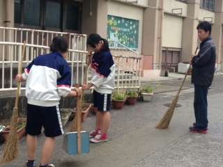 中学生は,管理用務員さんの仕事や先生の補助したり,一緒に遊んだりしていました。