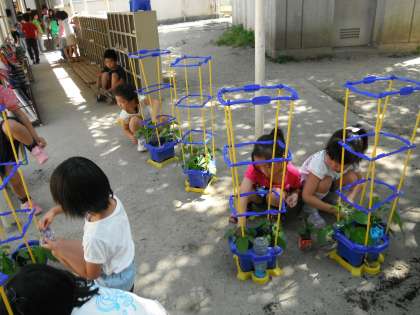 子どもたちのお世話の甲斐あって,すくすく育っているあさがお。