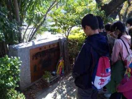 広島に到着し、オマールさんの住んでいた興南寮にやってきました。ここで折り鶴集会を行い、平和な世の中を作ることを誓いました。