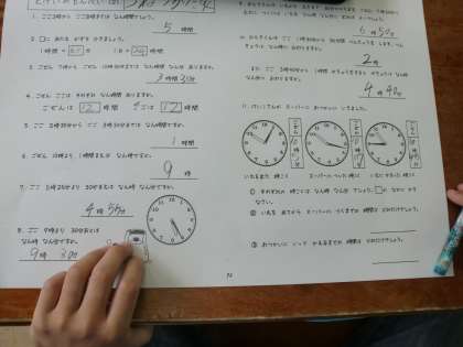 おさらいでは,時計の練習もしました。読むことはできるようになってきましたが,時間がまだまだ理解できていない子がいます。何度か練習をしていきます。