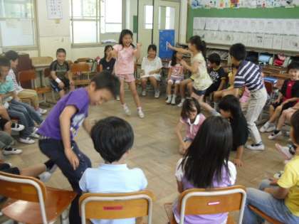 2年生では,週に一回みんな遊びをしています。それぞれの学級で,遊び係を中心にみんなで楽しむことができる遊びを考えて行っています。子どもたちは,遊びの中でルールを確認しあったり,話し合いから新しいルールを作ったりしながら楽しく遊んでいます。これからも色々な考えを出しながらみんなで話し合いまとめていく力を身に付けていってほしいと思っています。