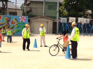 6月7日(金)の2時間目(4年3組),3時間目(4年4組)の自転車交通安全教室がありました。昨日に引き続き,晴天の暑い中,保護者の方や見守り隊の方の協力していただきました。