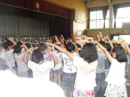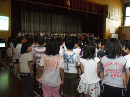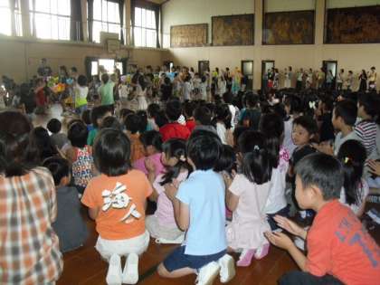 今日の一時間目・二時間目に全校で「一年生を迎える会」をしました。子どもたちが今まで一生懸命練習してきた「がってん音頭」はとても元気あり一人ひとりの心が一つになっていたように感じました。また,児童会や他の学年の出し物もとても楽しんで見ていました。