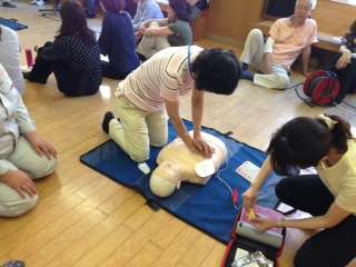 一人ひとりが,AEDを使った肺蘇生法を練習しました。