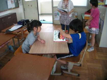 おはなしきらら隊のお母さんに「やまださんちのてんきよほう」をよんでいただきました。くすっと笑うお話でした。読み聞かせのあと,作者の長谷川義史さんの他の本にも興味がわいたようです。
