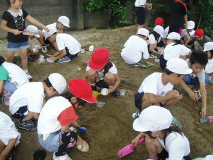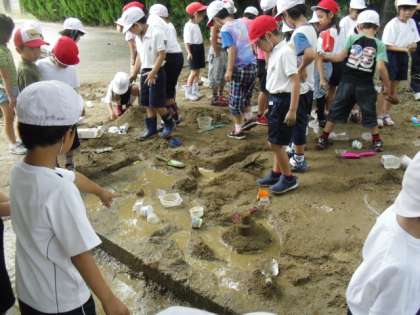 子どもたちは友達と協力しながら,川をつくったり,穴を掘ったり,とても楽しんでいる様子でした。