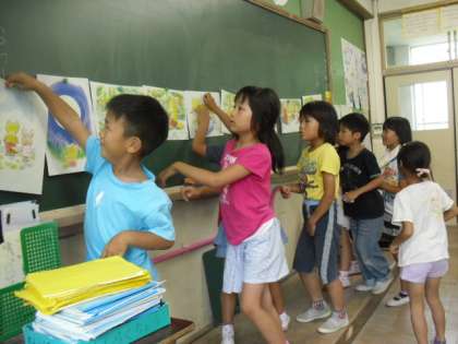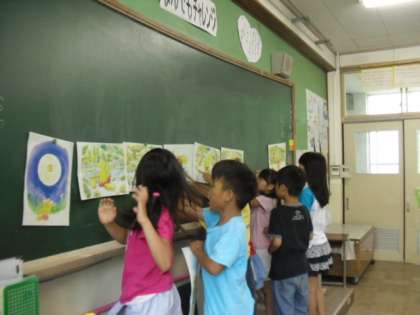 7月12日の国語では,「黄色いバケツ」の学習をしました。物語は主人公のキツネの子が黄色いバケツを見つけるところから始まり,キツネの子が黄色いバケツによせる思いを曜日ごとに追っていくお話です。子どもたちは,キツネの子の行動や思いを考えながらお話の面白さを読み取っていました。