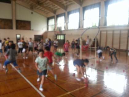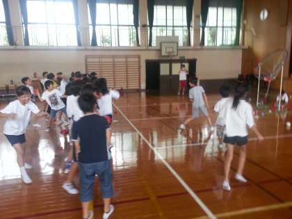 7月16日総合支援学校に通っているお友達との交流を,学年運動会で行いました。みんな,暑い体育館でしたが,それぞれのゲームを楽しみました。