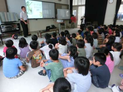 1時間目は,宮崎県経済農業組合の方から,ピーマンのことについてのお話を聞きました。