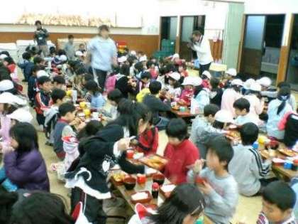 90畳の,みさきの家では一番大きな部屋でみんなそろって夕食を食べています。