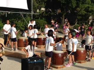 8月3日(土),5時から修学院児童館・学童による和太鼓による演奏で夏祭りがはじまりました。