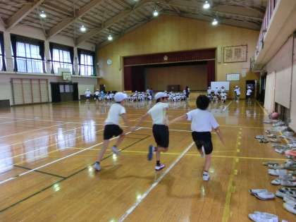 今日は,生憎の雨だったので,体育館で練習をしました。