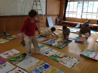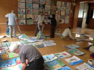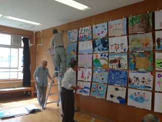 9月5日(木)10時から,同窓会の方々が絵画展の準備にきてくださいました。