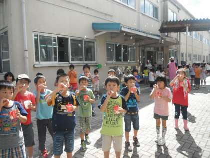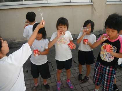 生活の「なつ だいすき」の学習で,シャボン玉をしました。