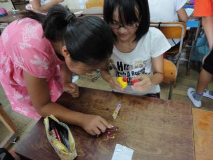9月14日の一乗寺バザーに,修学院小学校の6年も手作りの品物を作って