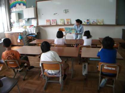 おはなしきらら隊のお母さんに読み聞かせをしてもらいました。食べ物のお話の本をたくさん持ってきていただきました。その中の「あれこれたまご」と言う題名の本を読ん頂きました。スーパーに並んでいた,たまごが買われていろいろなメニューになっていくお話でした。何になっていくか興味深く聞いていました。他の本も読みたくなりました。
