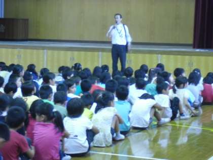 体育館では,登下校中に不審者に出会ったらどうするかという劇をみせていただいてよくわかったと思います。