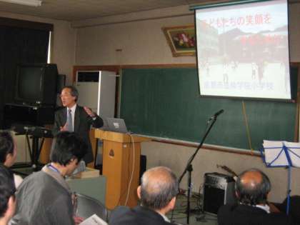 初めに,さだまさしの「償い」を聞いてもらいました。「人間って悲しいね。だってみんなやさしい。それが傷つけ合ってかばい合って…」傷つけようと思って傷つける人はいないけれど,傷つけてしまった時にどうするかが人間性を問われる時である。そんな話から,やさしさを育てるために今,学校で取り組んでいることなどを聞いていただきました。