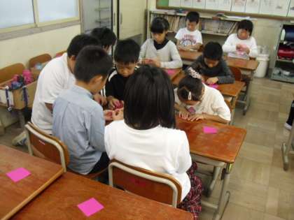今日の朝学習の時間に,6年生が広島へ修学旅行へ行く際に持っていく折鶴を作りました。小さな紙と細かな作業に子ども達は苦戦していましたが,6年生に優しく教えてもらい少しずつ思いのこもった鶴を完成させていきました。一人ひとりの思いが平和につながっていけたらと思っています。