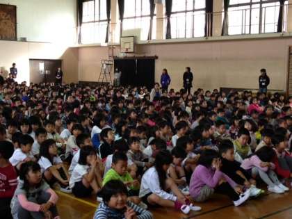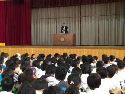 また,本校オリジナルの「修学院なかよしブック」についても話しました。これは,みんなが楽しく学校生活が送れるよう,「当たり前のことを当たり前にする」ための読本です。校舎内には,12項目の内容を掲示していますが,どれも当たり前の中身です。例えば,「ろうかは走らない」「時間を守ろう」「ひとにやさしく」などです。このような「当たり前」をどんどん増やしてほしいものです。