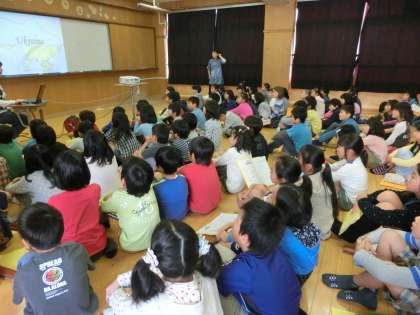 先週は,2組の保護者の方から,ウクライナとロシアの国の文化について話を聞きました。服装のことや食べ物のこと,流行の歌も聞きました。