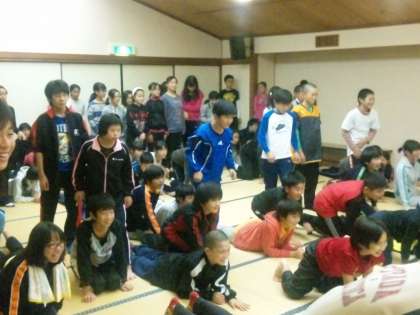 118人全員で夕食後の楽しいひとときを過ごしました。みんな,大盛り上がりでした。明日も早いので,しっかり睡眠をとってほしいです。