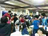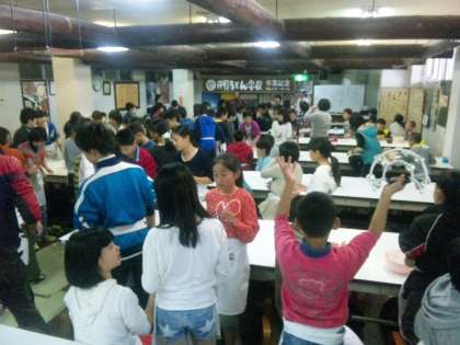 第2弾は,うどんの生地づくりをグループ単位で体験しました。この体験はAKBのBGMに乗って,