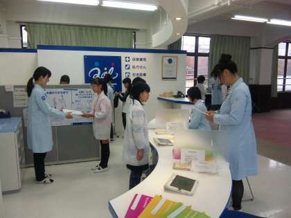 それぞれのブースで体験活動を進めます。サービスを提供する側の苦労を体験しながら…。