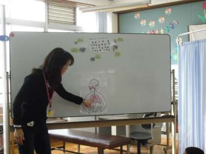 今日は身体測定をしました。身体測定をする前には保健の先生から「インフルエンザ」の話を聞き,インフルエンザにかからないための予防方法を学習しました。子ども達は,菌が口や鼻からだけでなく目からも入ってくることや乾燥した場所で増えること,そして丈夫な体づくりをしていれば,菌に勝つこともできることなど知りとても驚いていました。