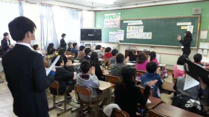 学年の小田先生が,新採を代表して英語の授業公開を行いました。今年採用のフレッシュな先生がたくさん集まり,子どもたちも少しきん張していましたががんばっていました。事後の話し合いでも,高評価を頂きました。子どもも,先生も,チャレンジ!