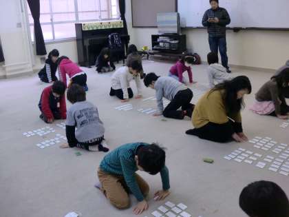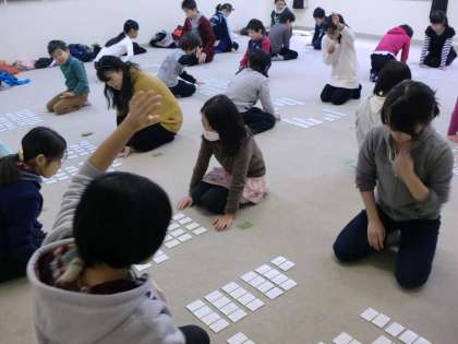 「かるた」の練習にたくさん来てくれました。子どもたちは試合の形式で真剣に取り組んでいます。